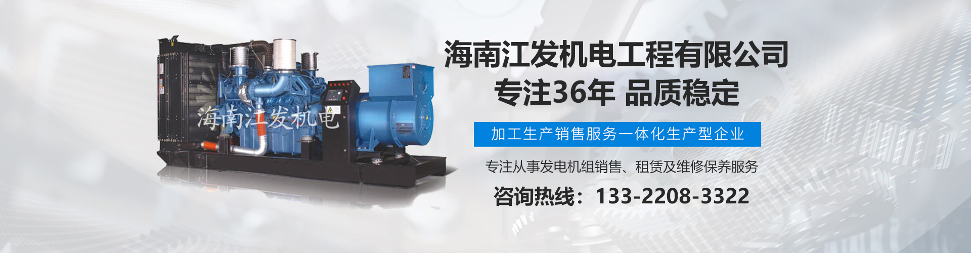 海南江發(fā)機電工程有限公司是海南經(jīng)營進口、國產(chǎn)柴油發(fā)電機組、是海南較早、較大的銷售、租賃服務及維修保養(yǎng)專業(yè)機電公司。從1985年開始,公司勵精圖治、銳意進取、不斷創(chuàng)新,不僅在海南機電行業(yè)領(lǐng)域中具有先進技術(shù)、完美管理、誠信服務,高超的產(chǎn)品質(zhì)量和性能,而且還有合理的產(chǎn)品性能價格比,令客戶滿意以及完善的支持保障。 在客戶心目中,江發(fā)公司不僅具有最好的企業(yè)信譽,還是客戶最信賴的誠信單位,而且會帶給客戶永遠的光明和豐厚回報。